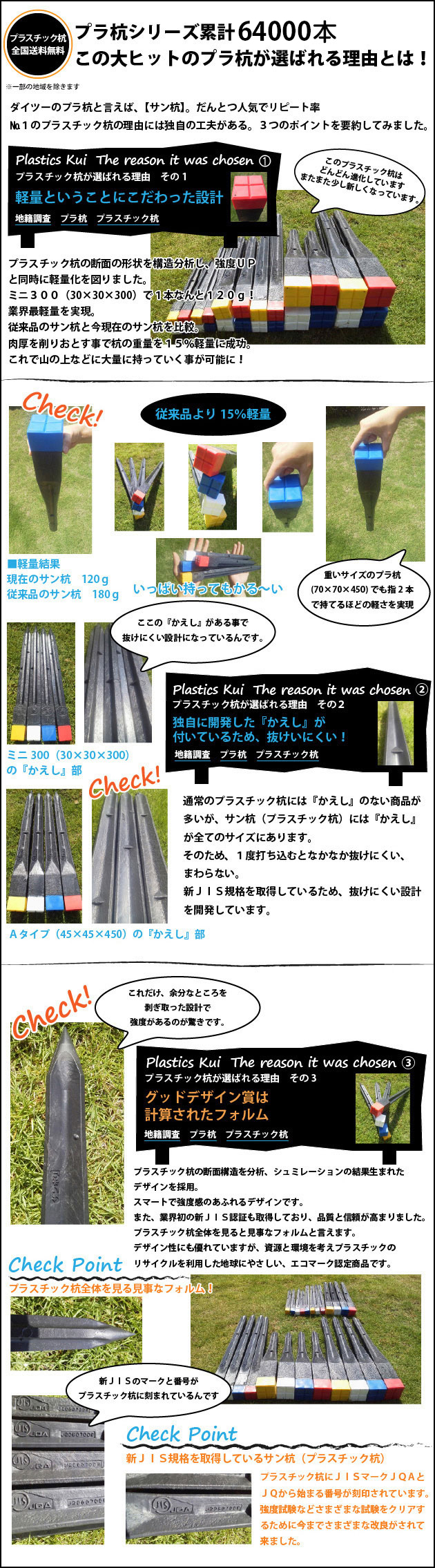 | プラ杭Aタイプ | サンクイA-450(45×45×450) | @¥300(税抜) |
