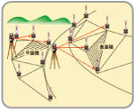 | 【水準測定】 ベンチマーク(BM)の標高を入力することにより、観測点の標高およびベンチマーク(BM)と観測各点の水平距離を計算して表示します。ターニングポイント(TP)観測によるもりかえにも対応しています。 |