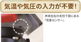 ![]() 本体に内蔵された自動気象センサーが、気温と気圧をリアルタイムに測定。測定結果のppm補正を行います。 |